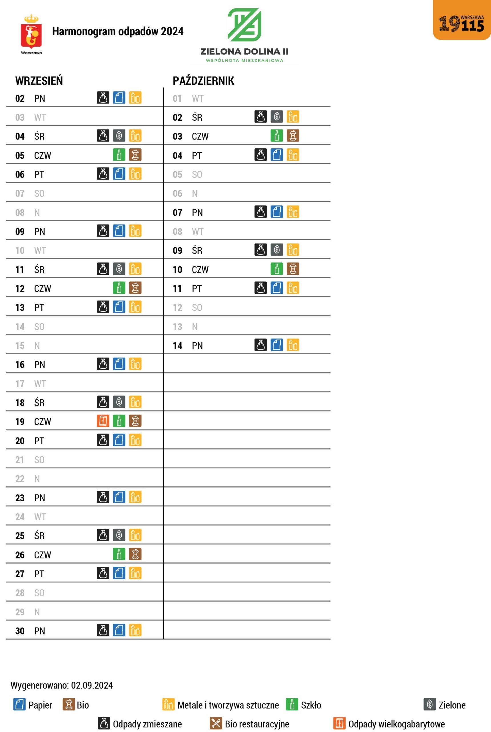 Harmonogram odbioru odpadów Wrzesień – Październik