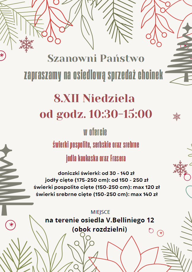 zapraszamy na osiedlową sprzedaż choinek.