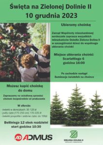 przy ul. Scarlattiego 6, odbędzie się wspólne ubieranie choinki, na które serdecznie zaprasza wszystkich mieszkańców osiedla, w szczególności dzieci, Zarząd WM „Zielona Dolina II”.
