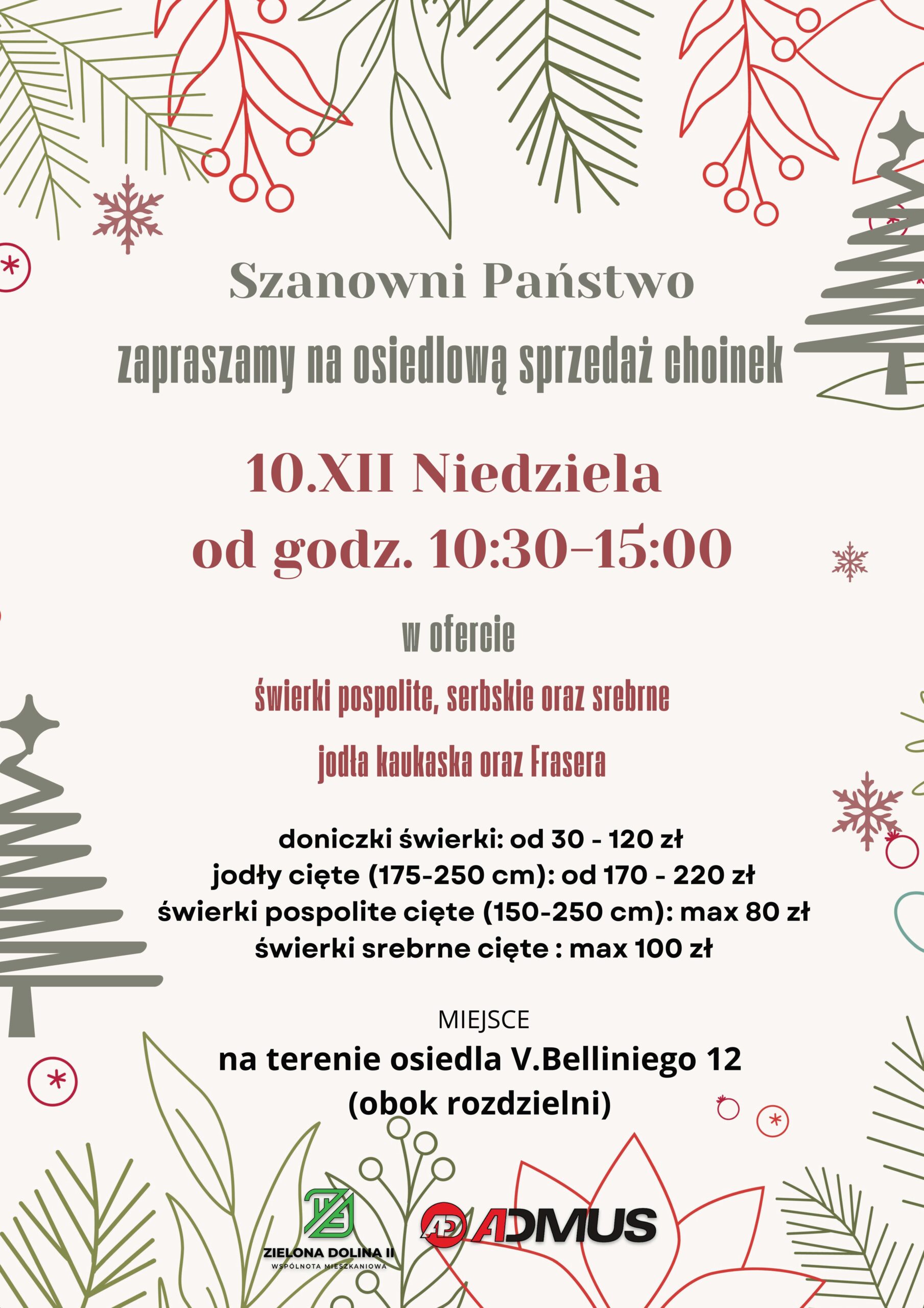 w godzinach 10:30-15:00, zapraszamy na osiedlową sprzedaż choinek.